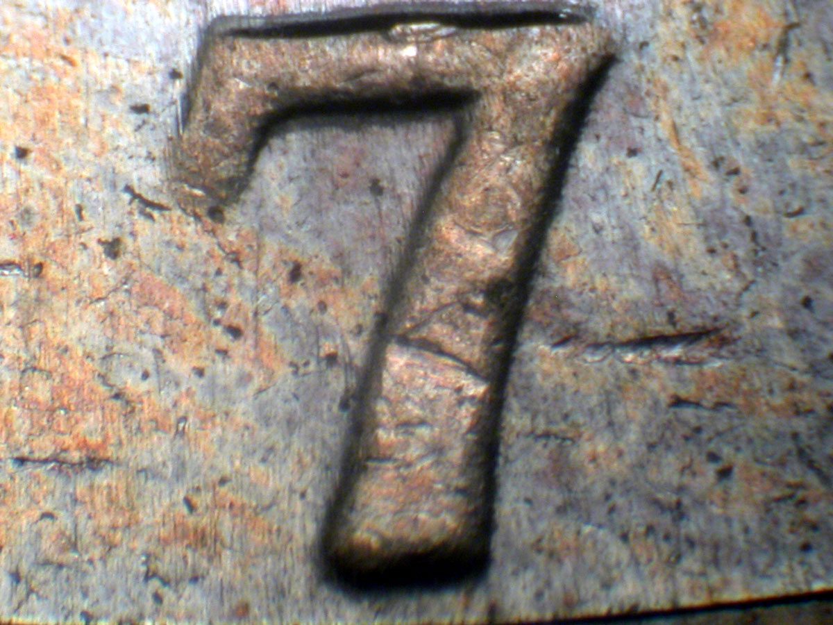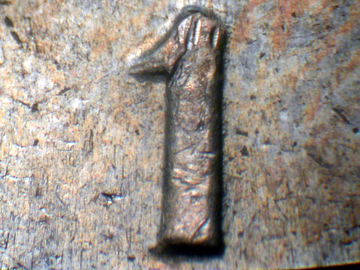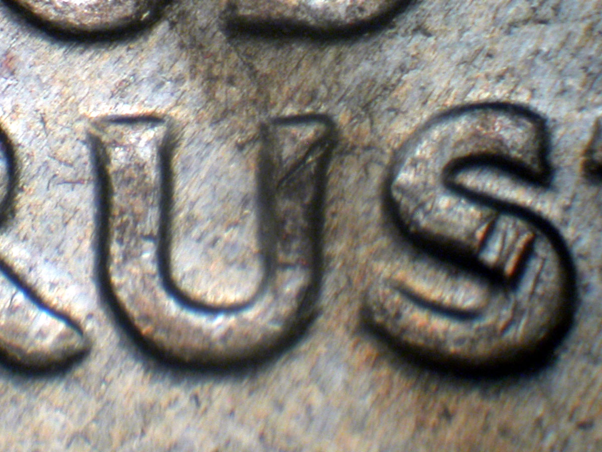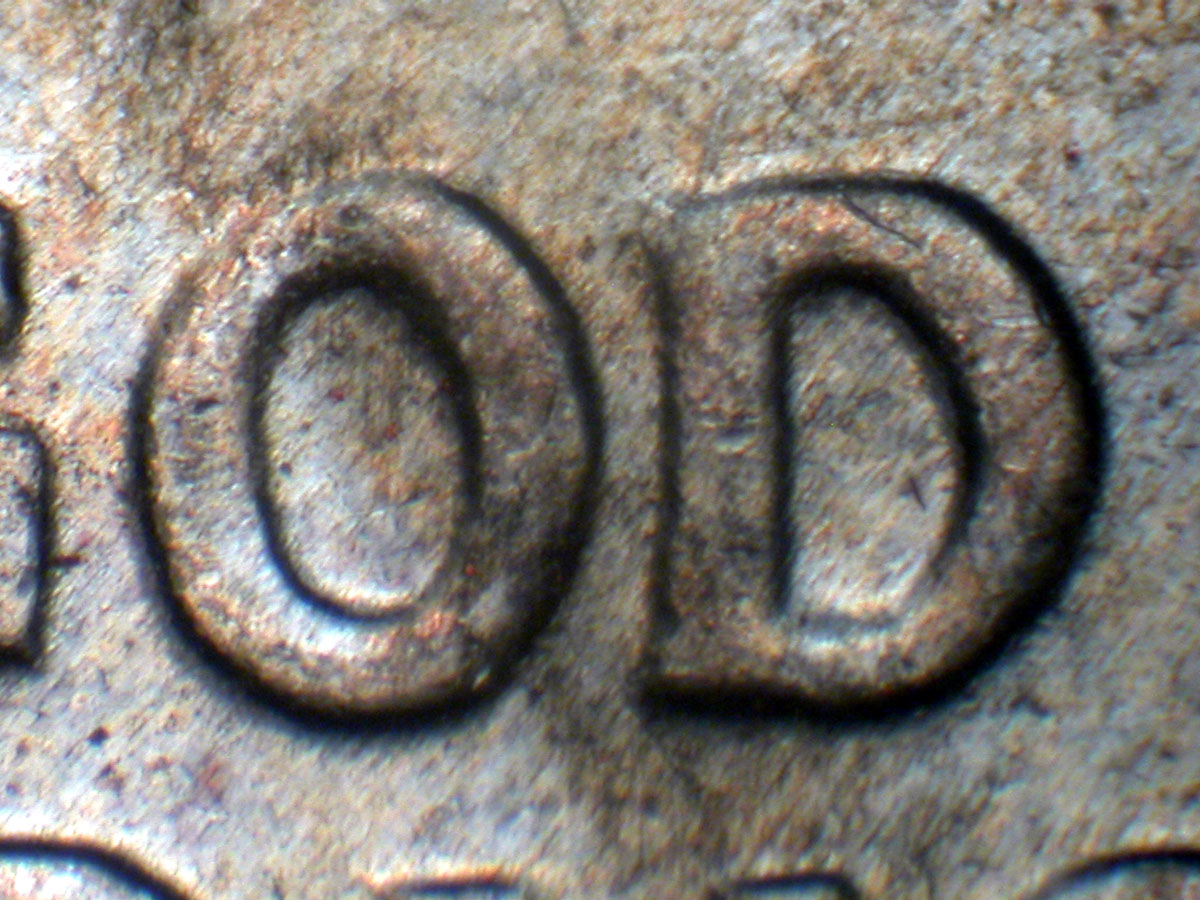Light spread on IN, TRUST, and first 1 of date as split upper serifs