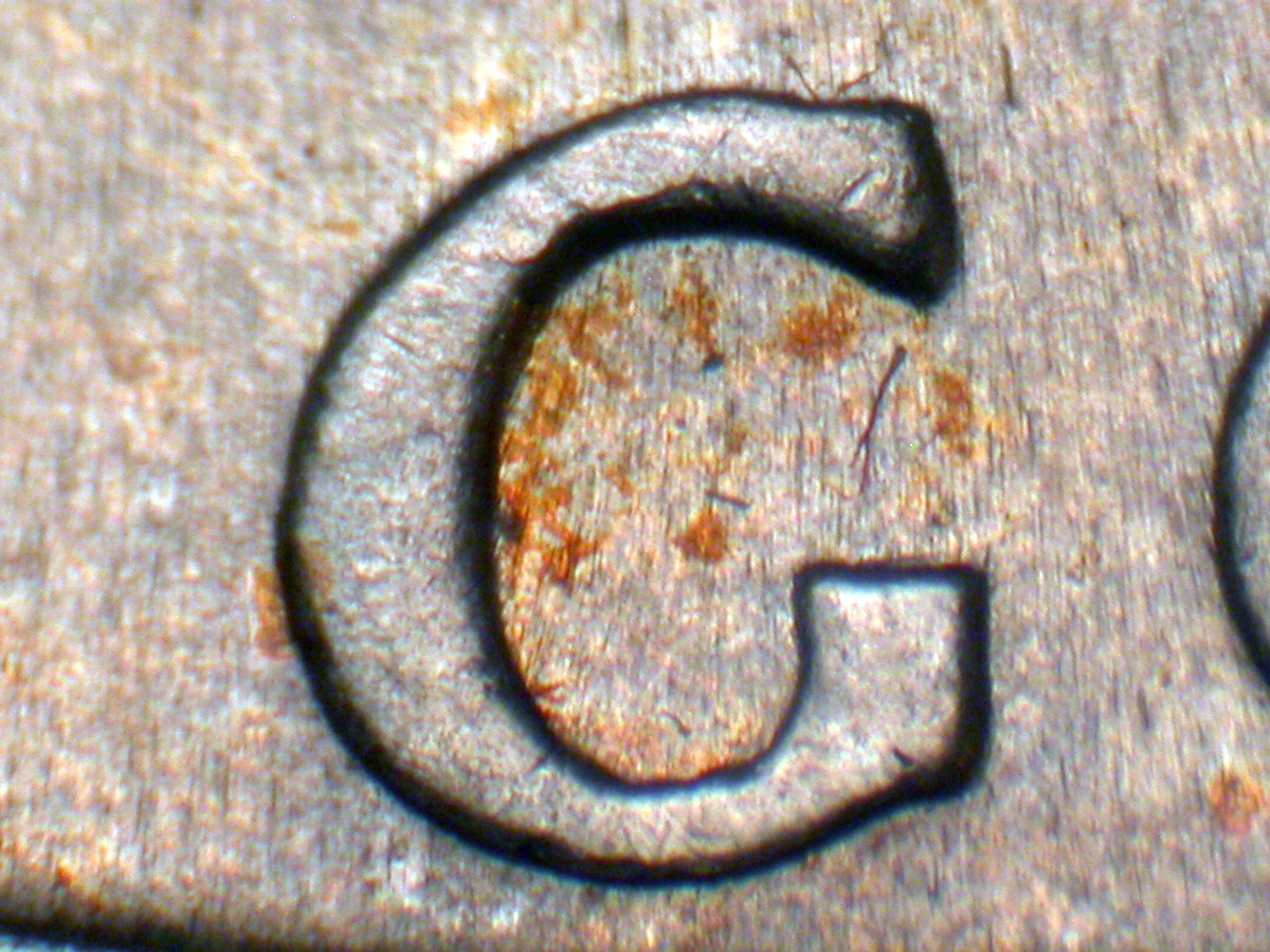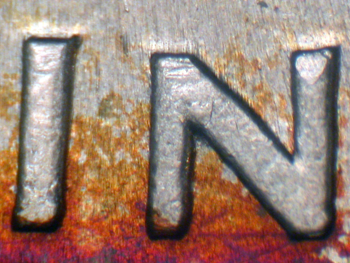 Very light spread on LIBERTY and IN GOD