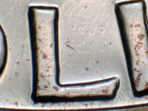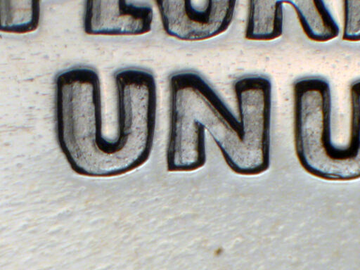 Medium spread on E PLURIBUS UNUM and eagle, with light spread on HALF
