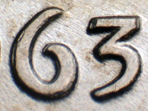Medium spread on L of LIBERTY, 63 of date, and ST of TRUST