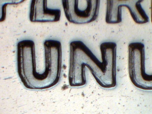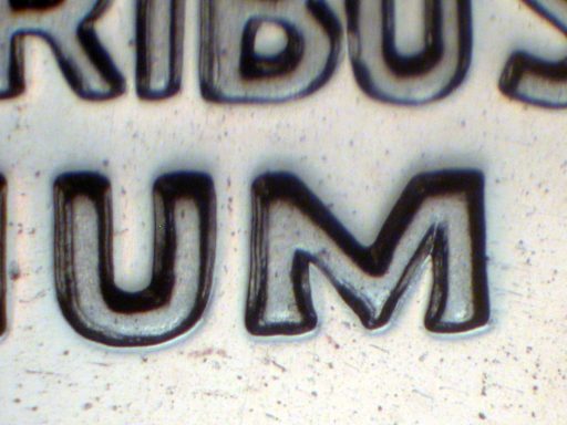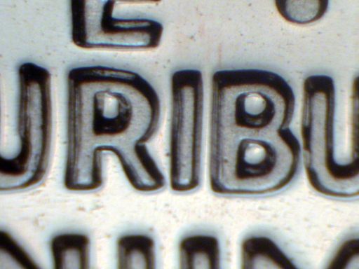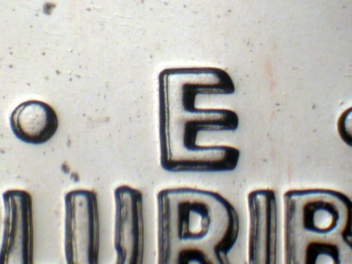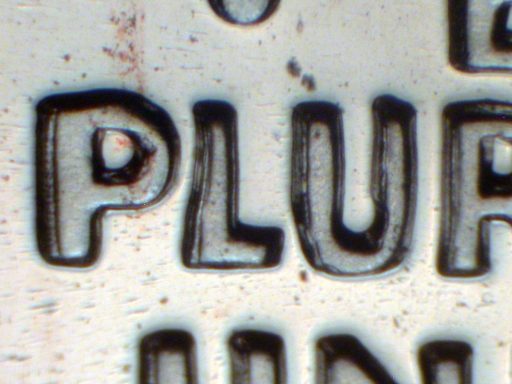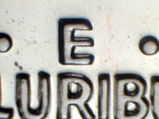 Light spread onE PLU of PLURIBUS, UN of UNUM, UNITED, AR of