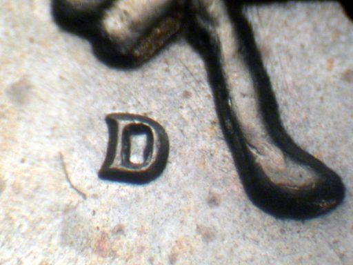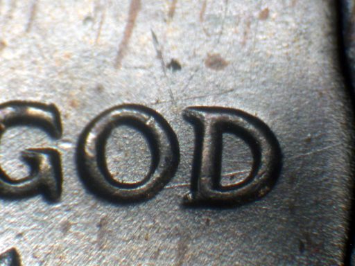 Die scratch from lower Right G of GOD through OD to bust LDS