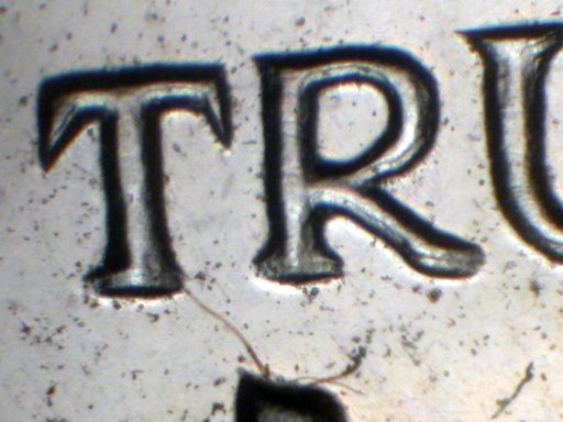 Medium spread on IN GOD WE TRUST, date, with triple spread on 4 of date