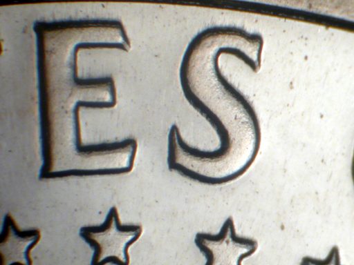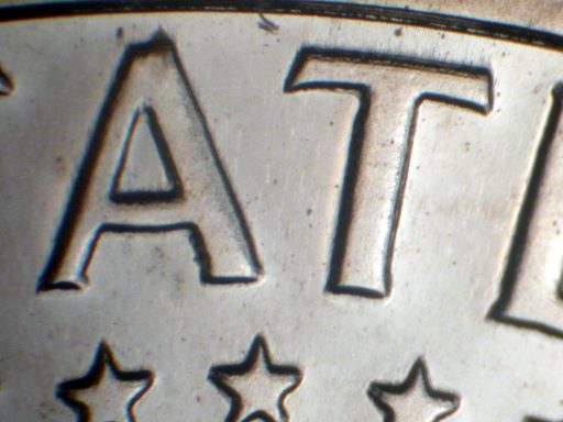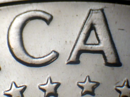 Light spread on STATES OF AMERICA, stars under those letters, and very light