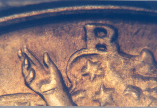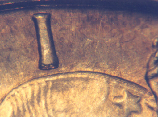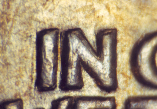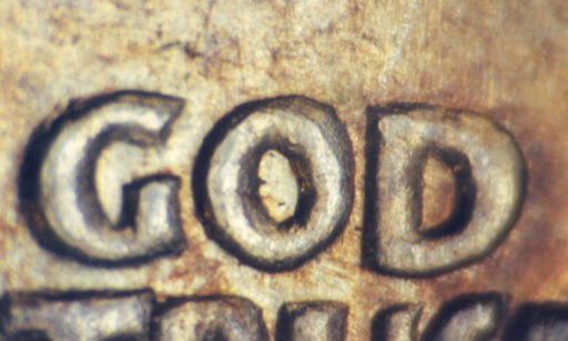 medium rotational spread on IN GOD WE TRUST, RTY of LIBERTY, and leaves