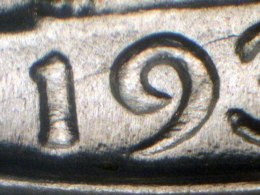 Light triple spread on upper edge of flag, light double spread on date, and