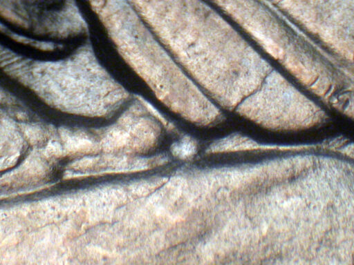 medium rotational spread on IN GOD WE TRUST, RTY of LIBERTY, and leaves