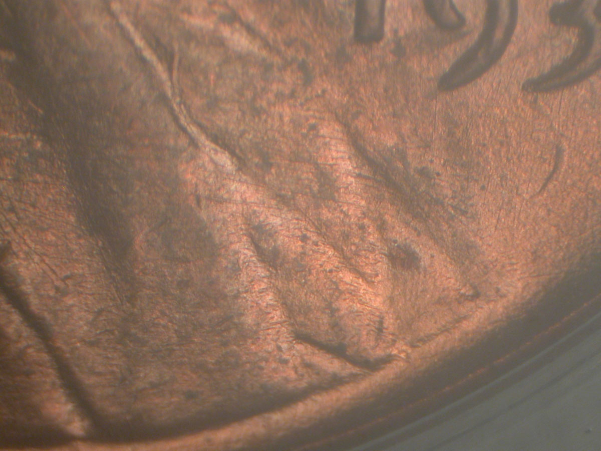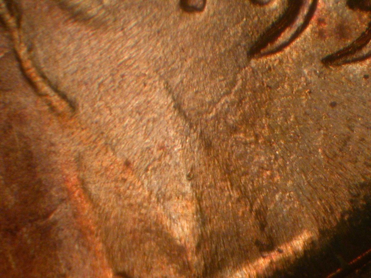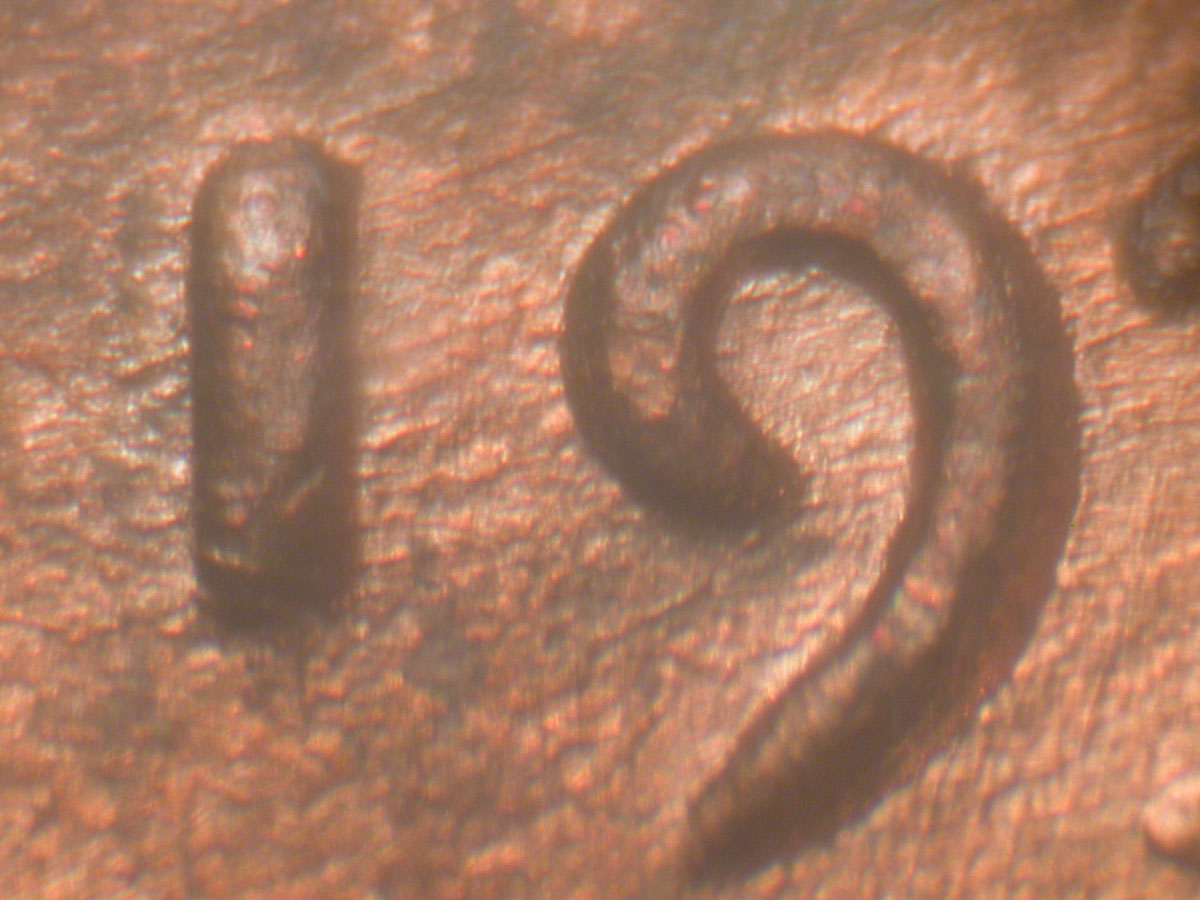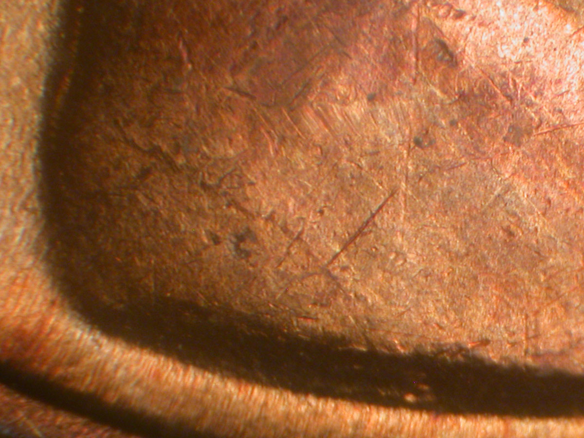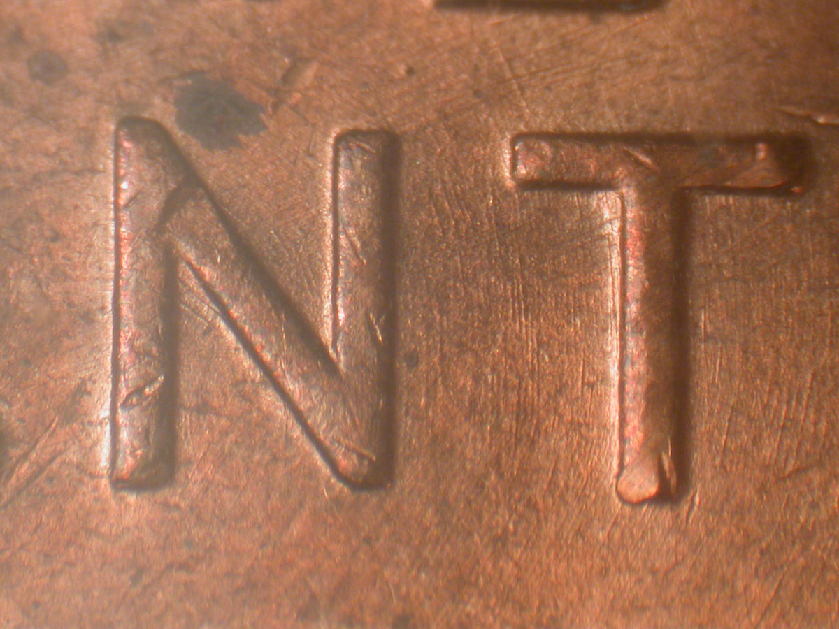 Die gouge dot to the upper Northeast of the N of CENT