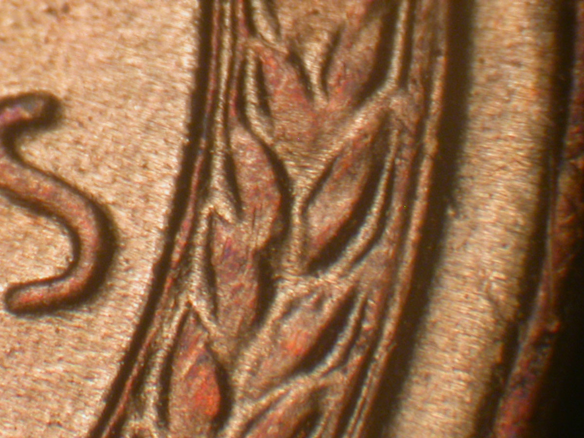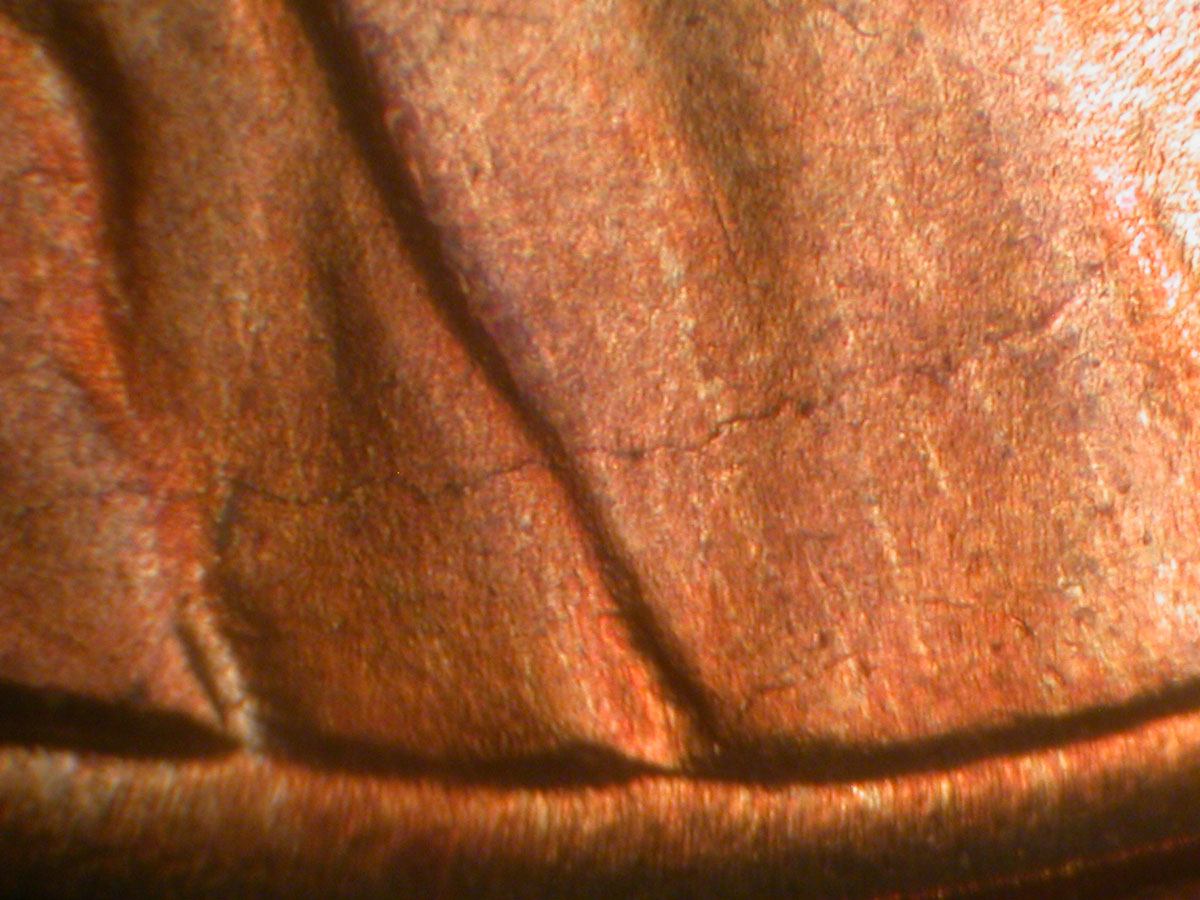 Light die crack from middle Right wheat grains to rim