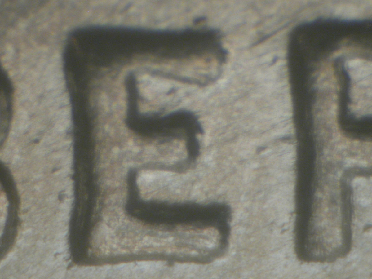 Light spread on LIBER of LIBERTY and IN