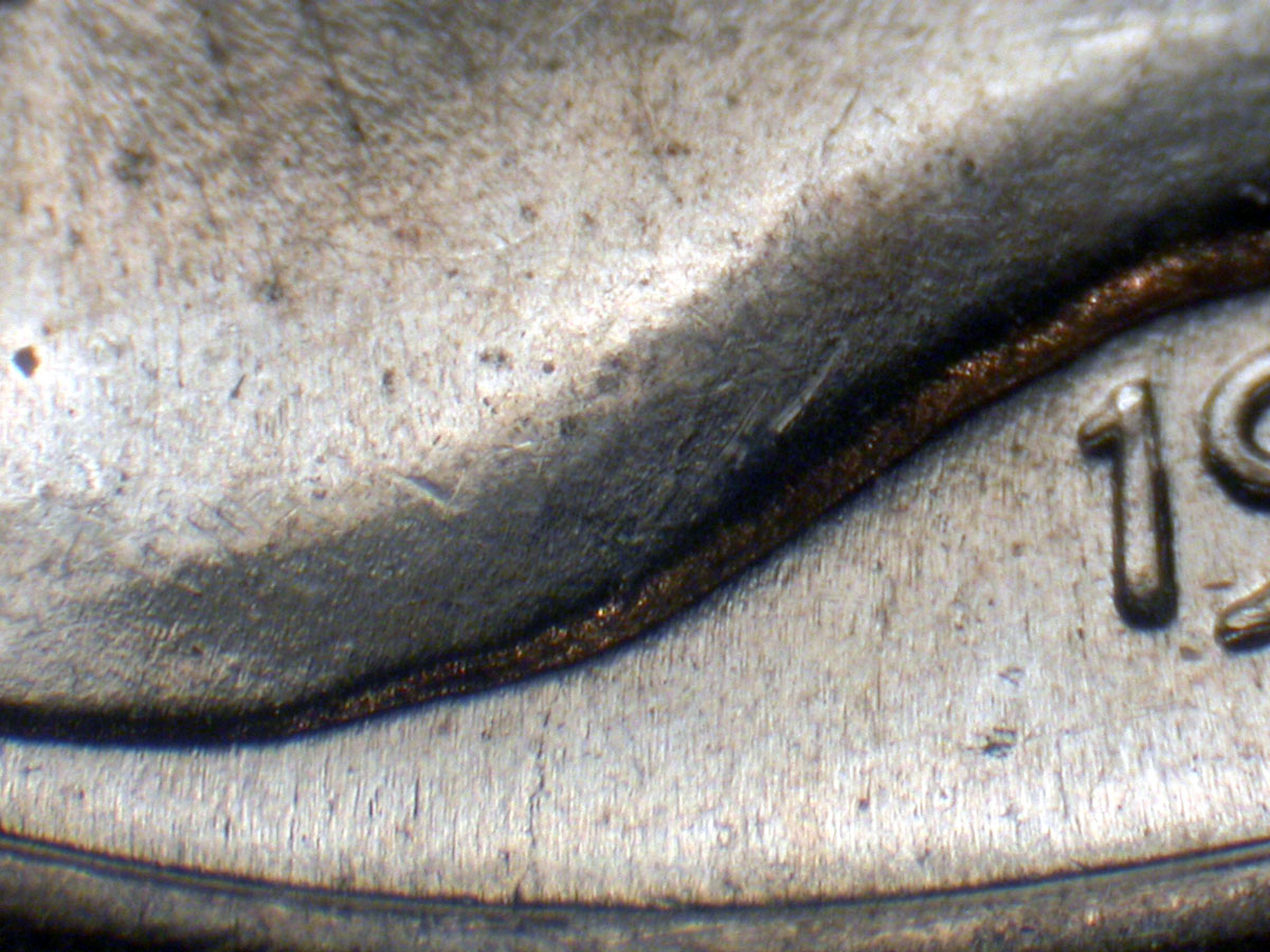Light die scratch from bottom fasces to D of DIME MDS