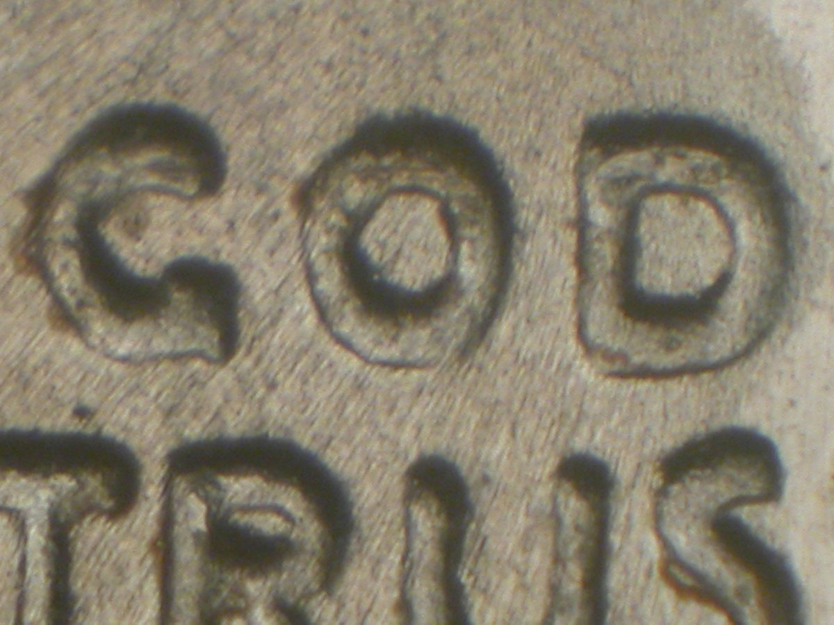 Light spread on date, IN GOD WE TRUST, and designer's initials
