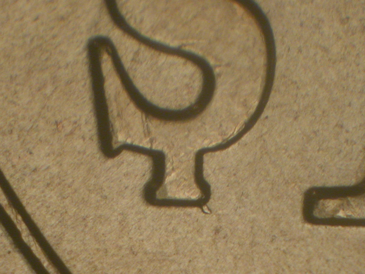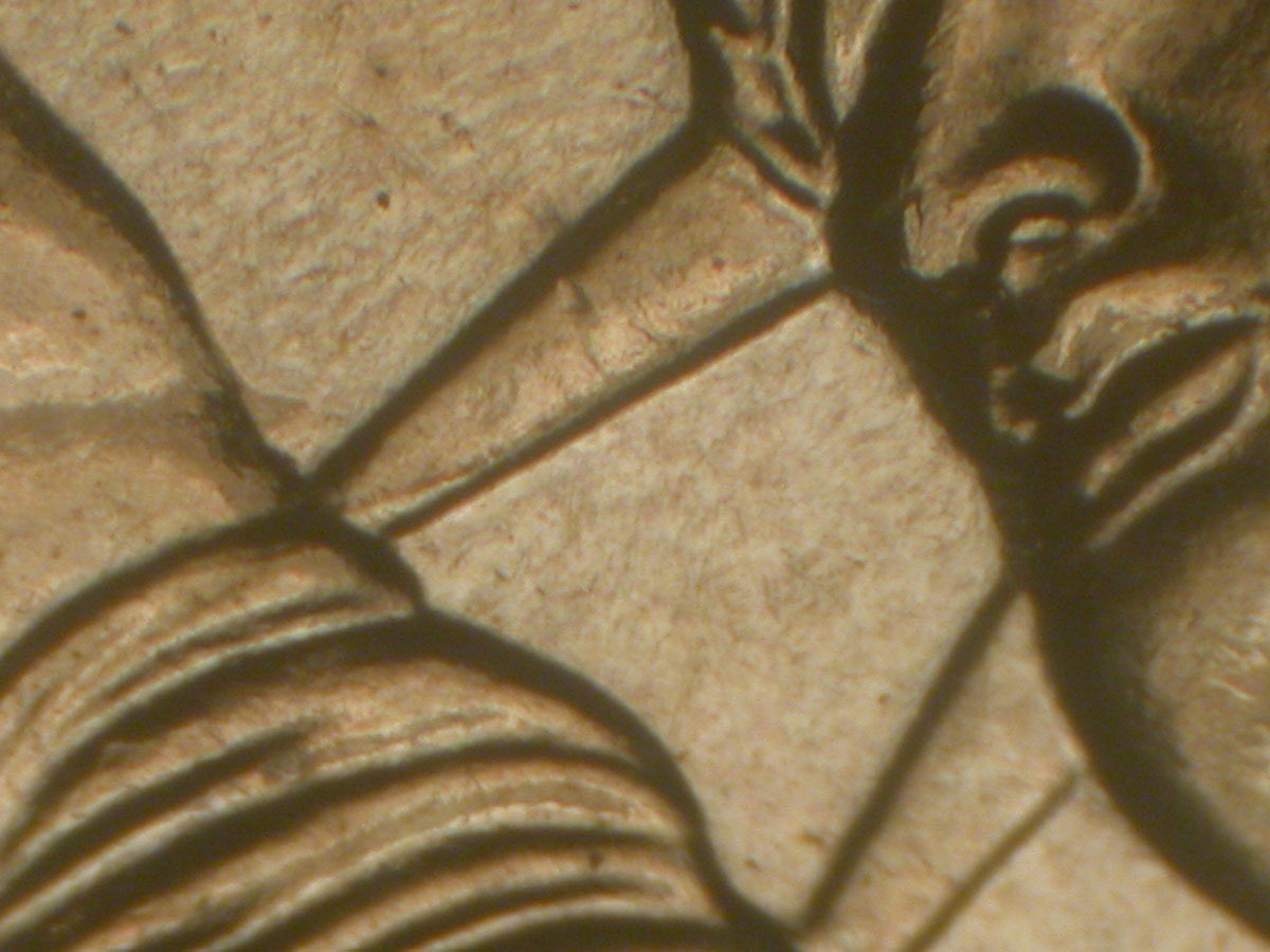 Very strong spread as an extra drapery fold on upraised arm of the Statue of