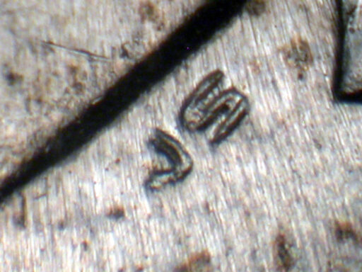 Light spread on date, designer's initials side by side, and IN GOD WE TRUST