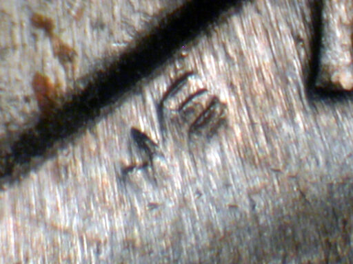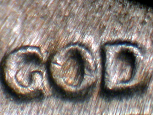 Medium spread on date, designer's initials top to bottom, and IN GOD WE