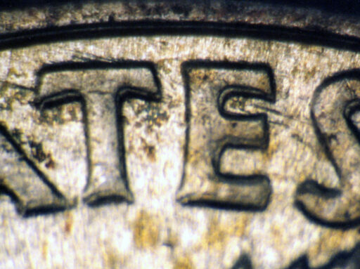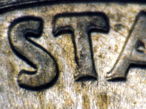 Medium spread on STATES OF with light spread on AMERICA, flame, olive