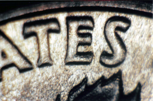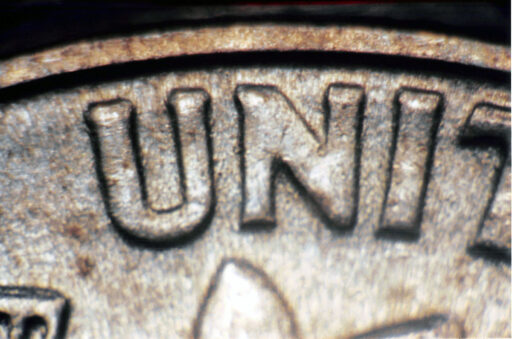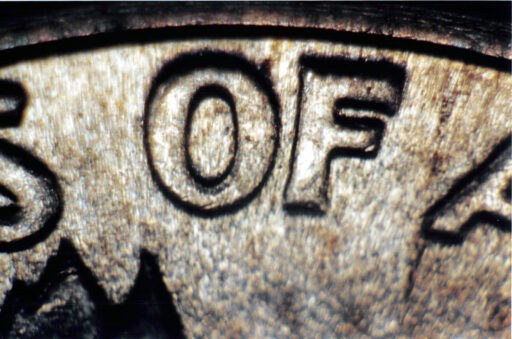 Medium spread on UNITED STATES OF AMERICA and ONE DIME