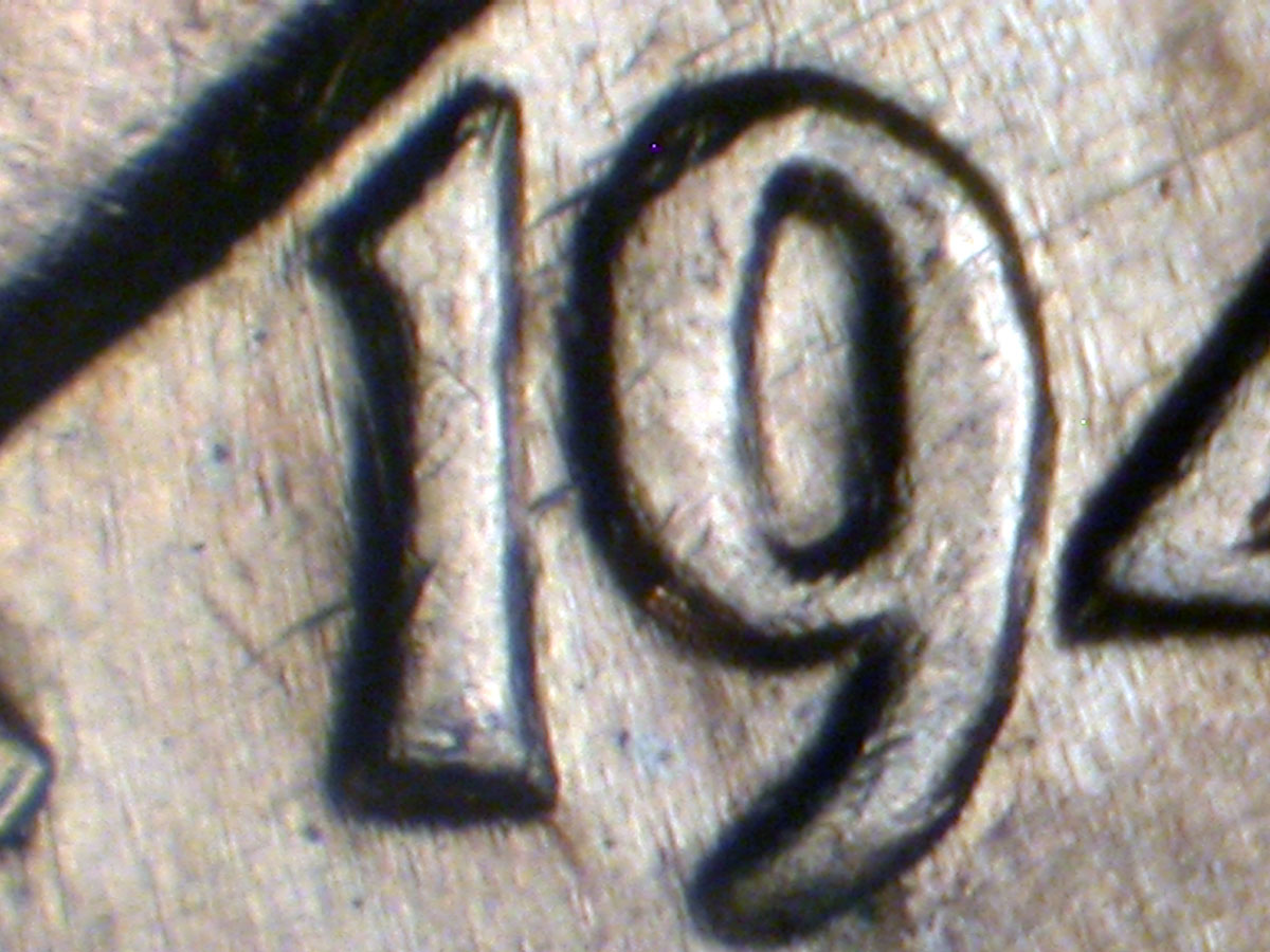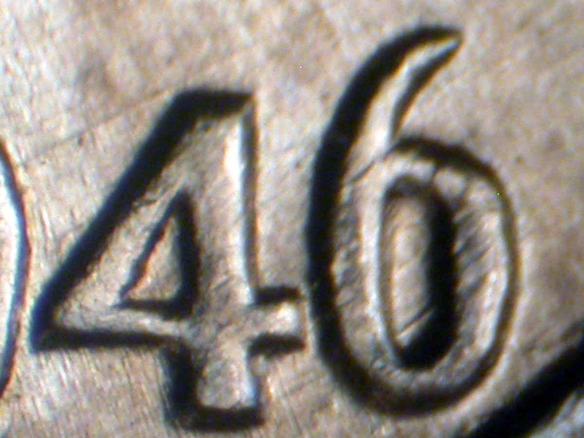 Light spread on date, designer's initials side by side, IN GOD WE TRUST, and