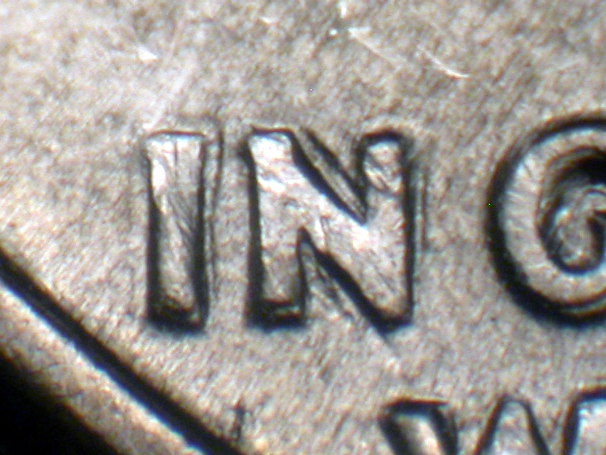 Strong spread on date, designer's initials top to bottom, IN GOD WE TRUST,