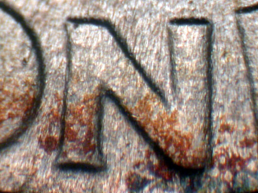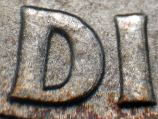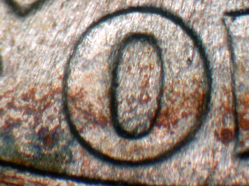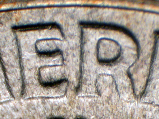 Light spread on AMERICA, ONE DIME, UNITED, E PLU of PLURIBUS, and