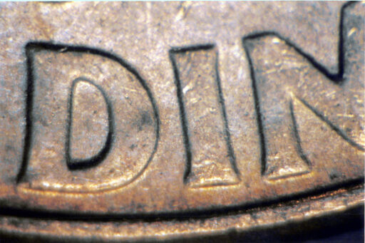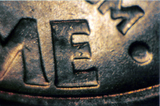 Medium spread on AMERICA, UNUM, DIME, and Right stem