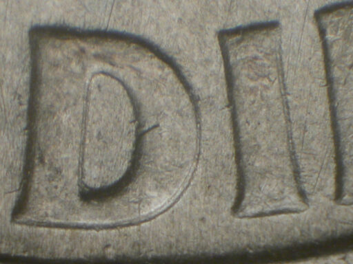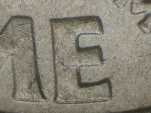 Die gouge through the middle of the ME of DIME LDS