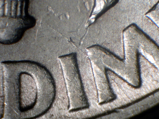Die crack from lower Right torch to rim through M of DIME VLDS