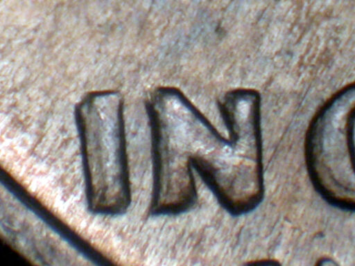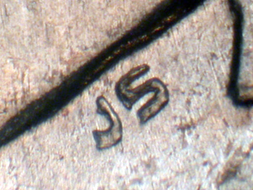 Medium spread with strong extra thickness on date, designer's initials, IN GOD