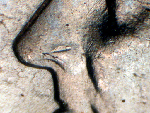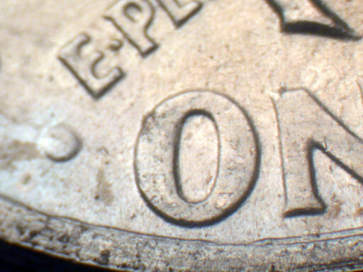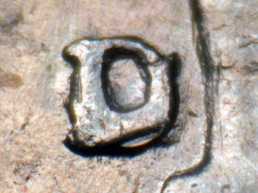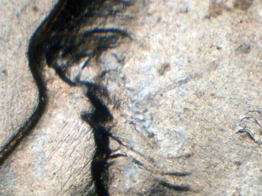 Long die gouge next to rim under ONE EDS