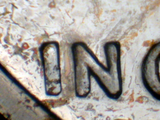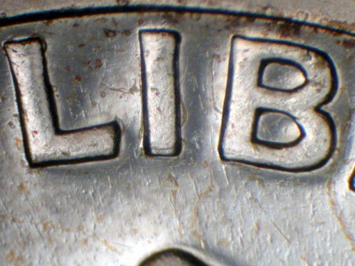 Short die gouge Left middle of Y of LIBERTY EDS