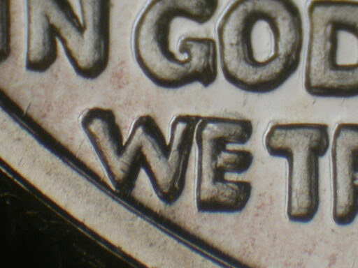 IN GOD WE TRUST, designer's initials, and 6 of date