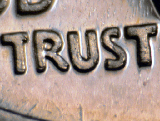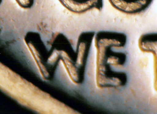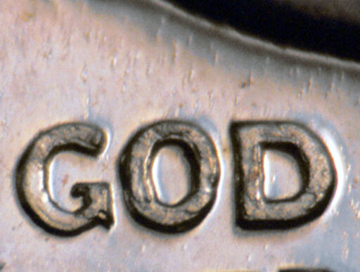 Light spread on designer's initials top to bottom, IN GOD WE TRUST, and