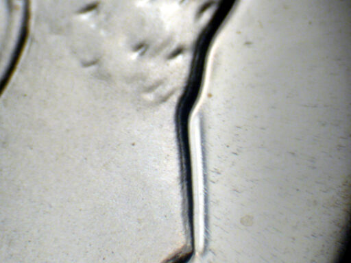 Strong but weird extra thickness on designer's initials top to bottom, IN GOD
