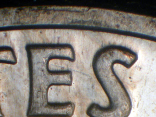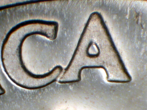 Die scratch on rim above E of STATES EDS