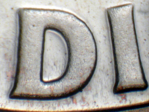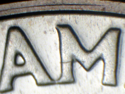 Light spread on UNITED STATES OF, ONE DIME, andE PLUB of