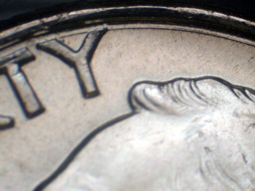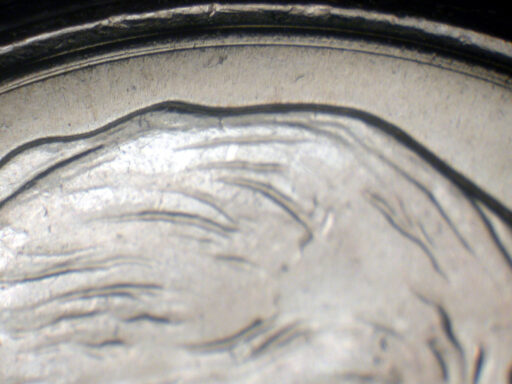Strong circular die scratch around upper Obverse rim MDS
