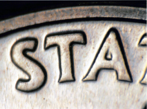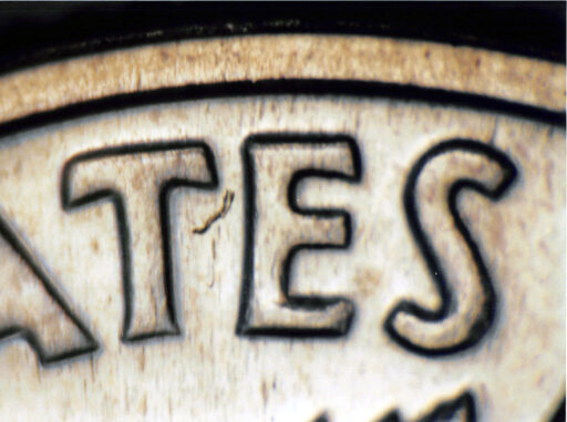 Light spread on ONE, UNITED STATES OF, and E PLU of PLURIBUS