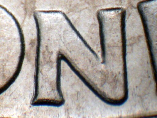 Light spread on UNITED STATES, ONE DIME, and E PLU of PLURIBUS