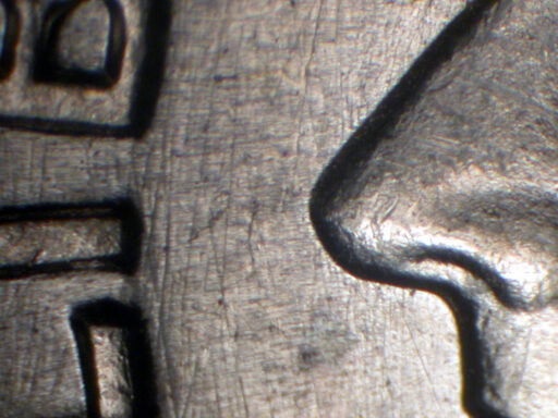Numerous fine die scratches in Obverse fields EDS