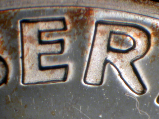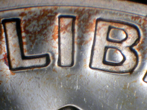 Medium rotational spread on LIBERTY and hair, with light spread on date