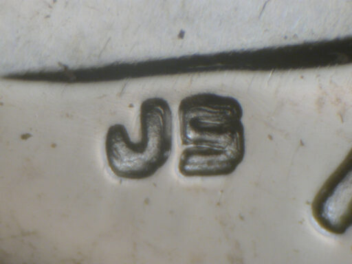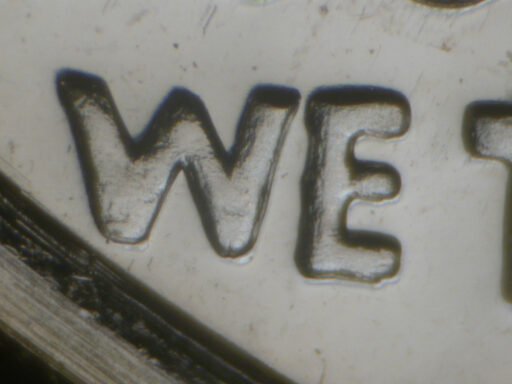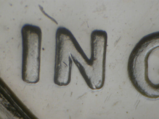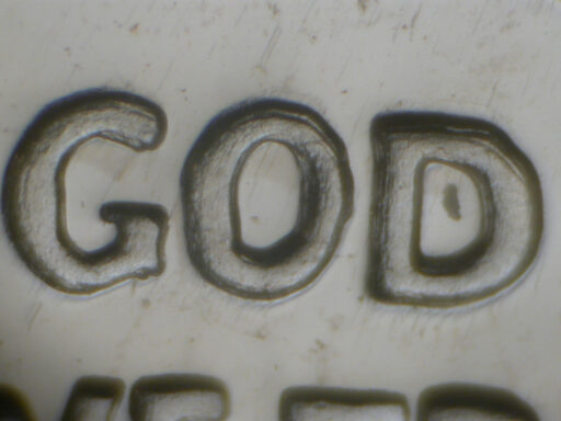 Medium spread on IN GOD WE TRUST, designer's initials, and date