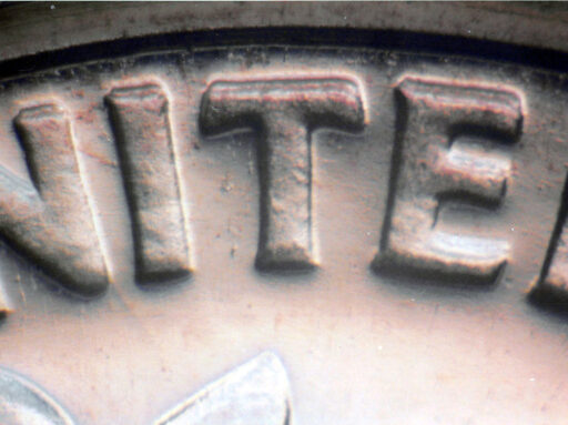Medium spread on UNITED STATES, ONE DIME, E PLU of PLURIBUS, and