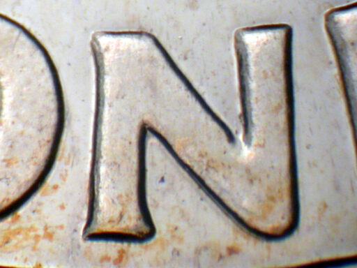 Light spread on ONE, UNI of UNITED as notched corners, Left stem, and E PLU