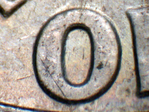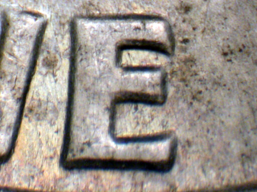 Medium spread on ONE DIME with light spread on UNITED, and OF