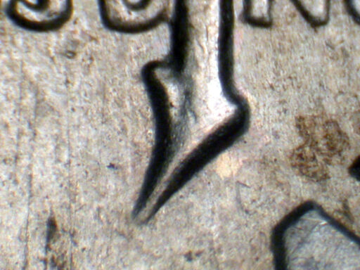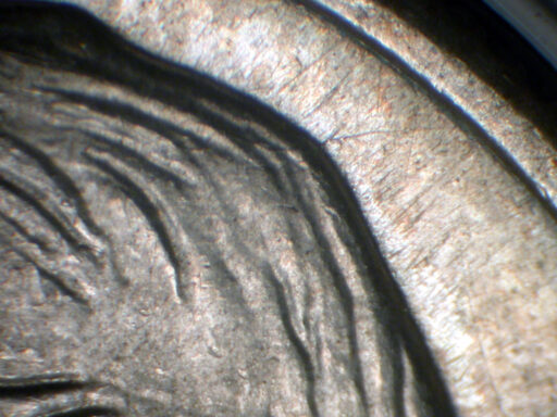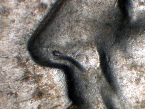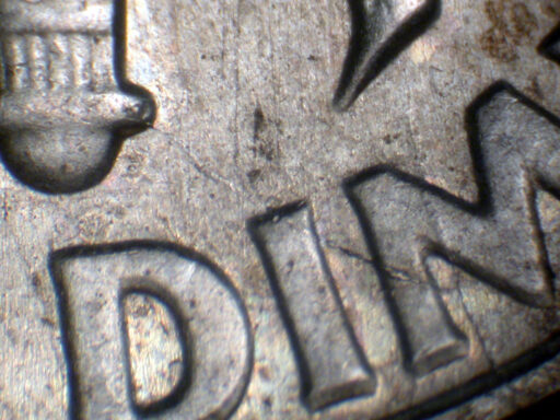 Die crack from rim North through M of DIME to Right stem