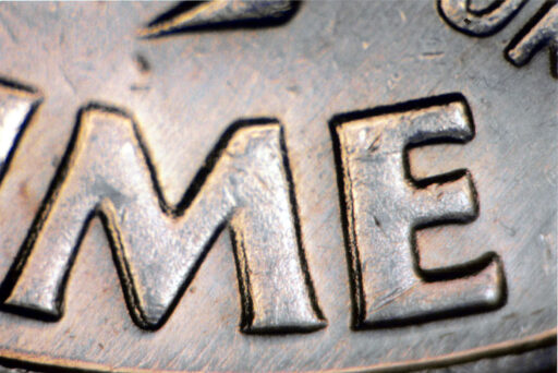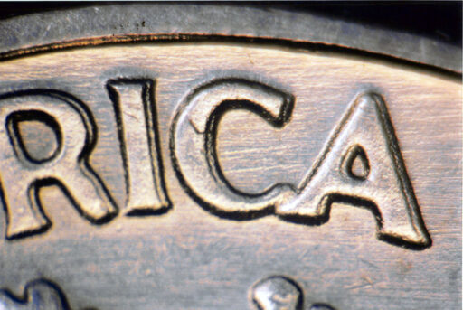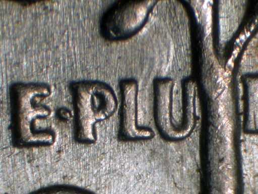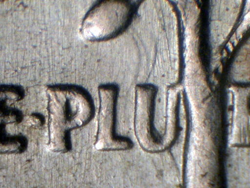 Die clash shows through E PLU of PLURIBUS EDS