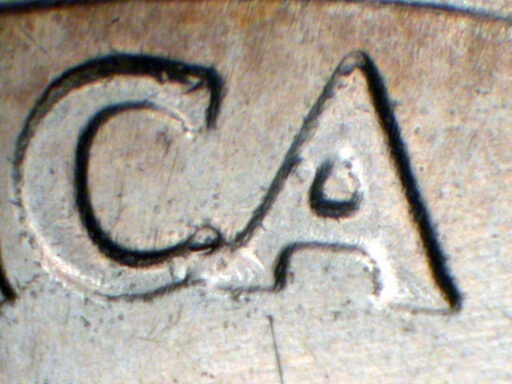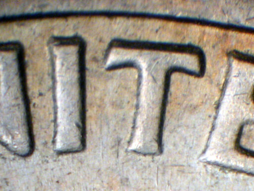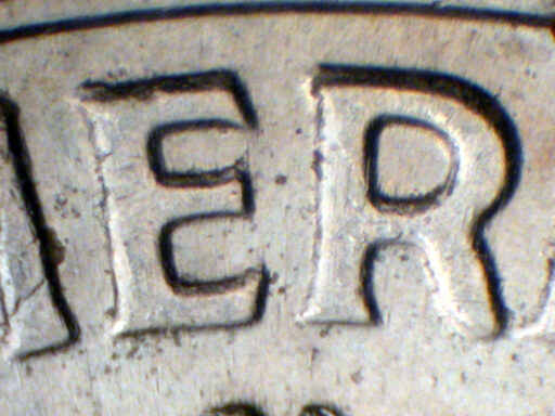 Light spread on UNITED STATES OF AMERICA, ONE DIME, and M of
