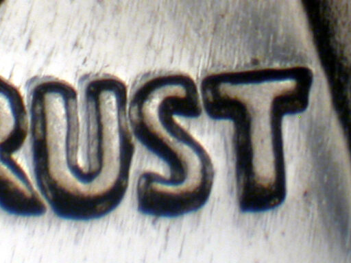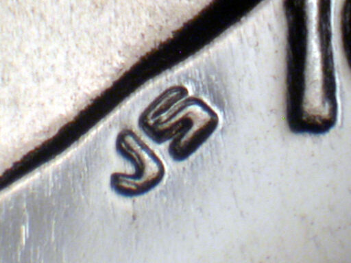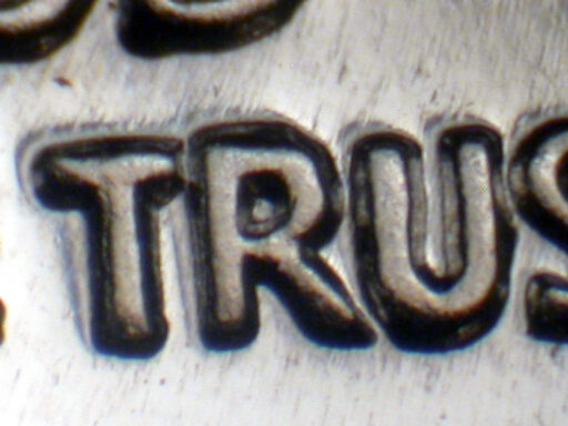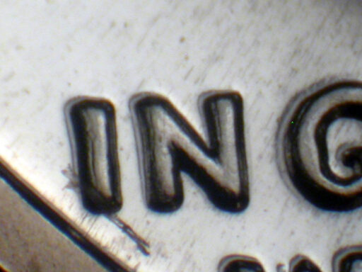 Light spread on IN GOD WE TRUST, designer's initials side by side, date, and