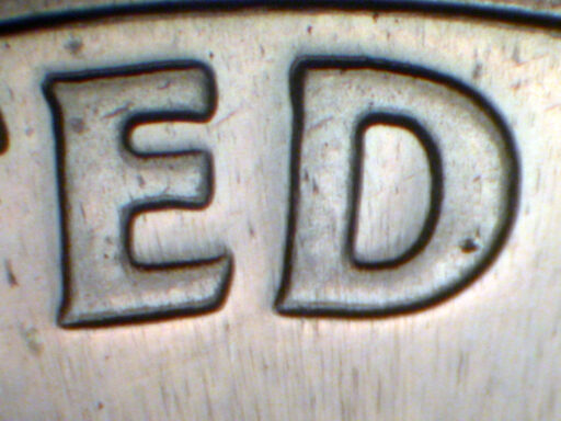 Light spread on UNITED STATES, E of E PLURIBUS, and ONE