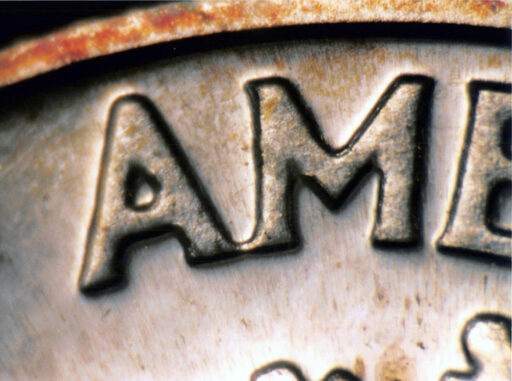 Medium spread on ONE DIME, AMERICA, and UNUM